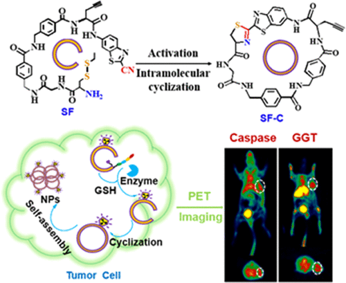 57.Jianguo Lin*, Dingyao Gao, Shijie Wang, Gaochao Lv, Xiuting Wang, Chunmei Lu, Ying Peng, Ling Qiu*. Stimuli-Responsive Macrocyclization Scaffold Allows In Situ Self-Assembly of Radioactive Tracers for Positron Emission Tomography Imaging of Enzyme Activity. J. Am. Chem. Soc. 2022, 144, 17, 7667-7675, https://doi.org/10.1021/jacs.1c12935
