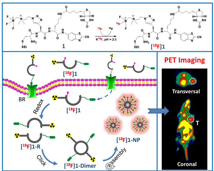 近日,我所創(chuàng)新藥物研究中心林建國(guó)研究員、邱玲研究員團(tuán)隊(duì)在中科院1區(qū)Top期刊《ACS Nano》(IF=15.881)上在線發(fā)表論文,報(bào)道了一種腫瘤微環(huán)境響應(yīng)激活型智能小分子PET探針,成功實(shí)現(xiàn)了探針?lè)派湫孕盘?hào)較長(zhǎng)時(shí)間滯留在特定的靶組織中,達(dá)到了高特異性、高靈敏度的PET顯像效果,為發(fā)展新一代核素靶向診療分子探針提供了新的策略。